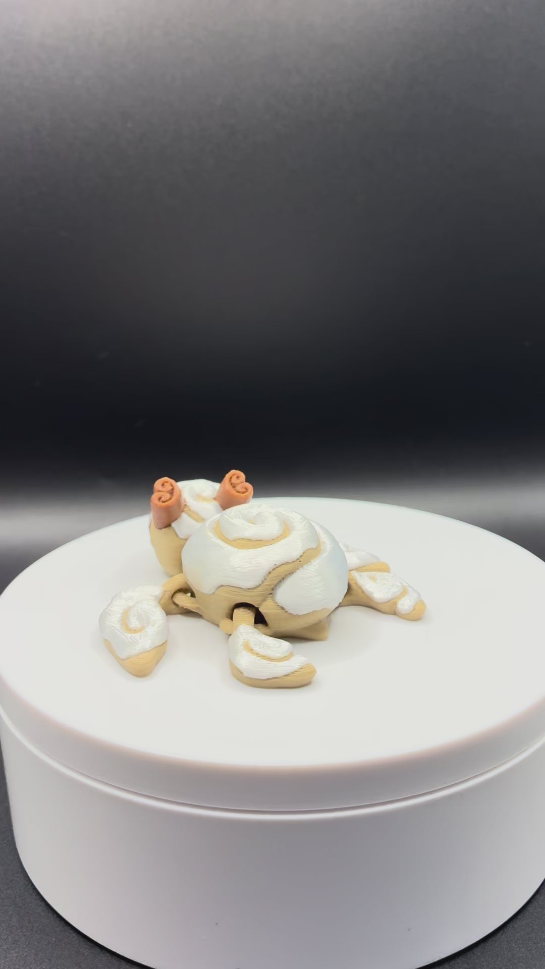 Sculpted cinnamon-swirl shell and frosting-style accents