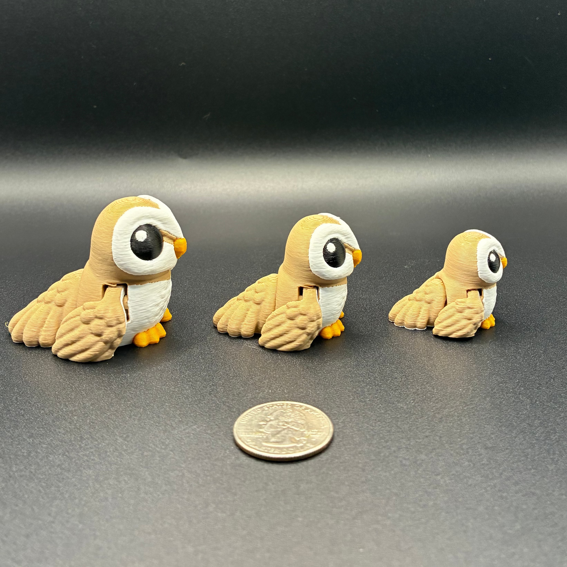 Each size represents the same Hearthwing Owl, scaled to fit its collection.